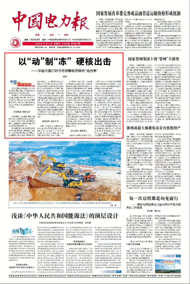 2024年12月5日中國電力報第8813期 第一版 頭版