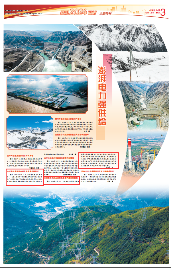 【中國(guó)電力報(bào)]全球海拔最高風(fēng)電項(xiàng)目全容量并網(wǎng)投產(chǎn) 全球煤電機(jī)組二次再熱最高汽溫紀(jì)錄刷新