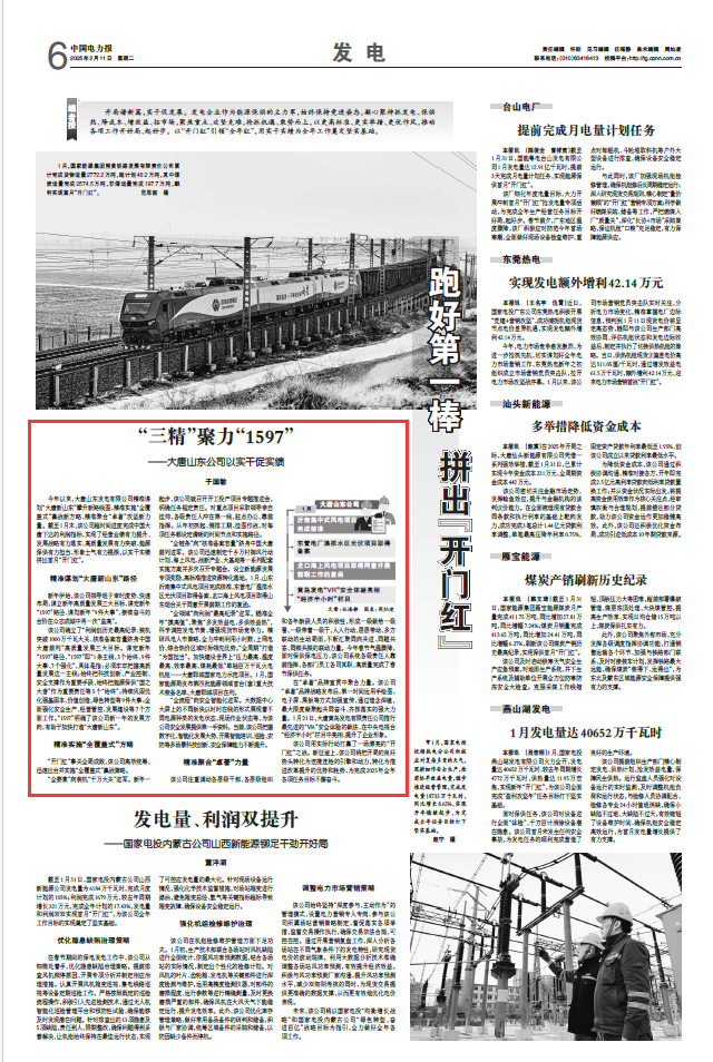 ? ? 今年以來,大唐山東發(fā)電有限公司精準(zhǔn)謀劃“大唐新山東”攀升新路線圖、精準(zhǔn)實(shí)施“全覆蓋式”贏戰(zhàn)新方略、精準(zhǔn)聚合“卓著”攻堅(jiān)新力量。截至1月末,該公司超時間進(jìn)度完成中國大唐下達(dá)的利潤指標(biāo),實(shí)現(xiàn)了經(jīng)營業(yè)績有力提升、發(fā)展戰(zhàn)略有力落實(shí)、高質(zhì)量發(fā)展有力突破、能源保供有力擔(dān)當(dāng)、形象士氣有力提振,以實(shí)干實(shí)績拼出首月“開門紅”。